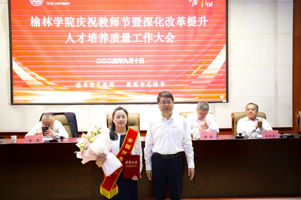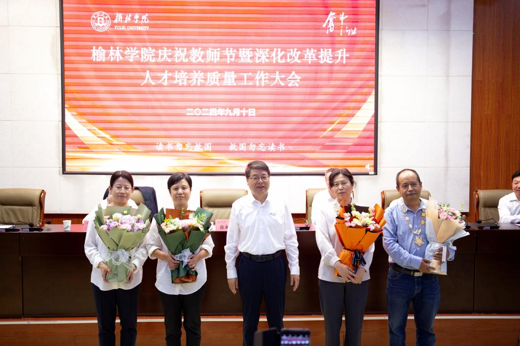 为深入学习贯彻党的二十届三中全会和全国教育大会精神、习近平总书记关于教育的重要论述和中共中央、国务院关于弘扬教育家精神加强新时代高素质专业化教师队伍建设的意见,进一步深化改革,全面提高人才培养质量,9月10日下午,以“大力弘扬教育家精神、深化改革提升人才培养质量”为主题的星空娱乐庆祝教师节暨深化改革提升人才培养质量工作大会在逸夫楼一楼报告厅隆重举行。全体校领导、副处级及以上干部、三级教授、从教30年教师、入选2024年全国优秀教师、2024年“最美榆苑人”“四有好老师”“榆溪学者”、2024年国家自然科学基金项目获批者、陕西省基础教育教学成果奖获得者、教师代表、新进博士、学生代表近200人参加。