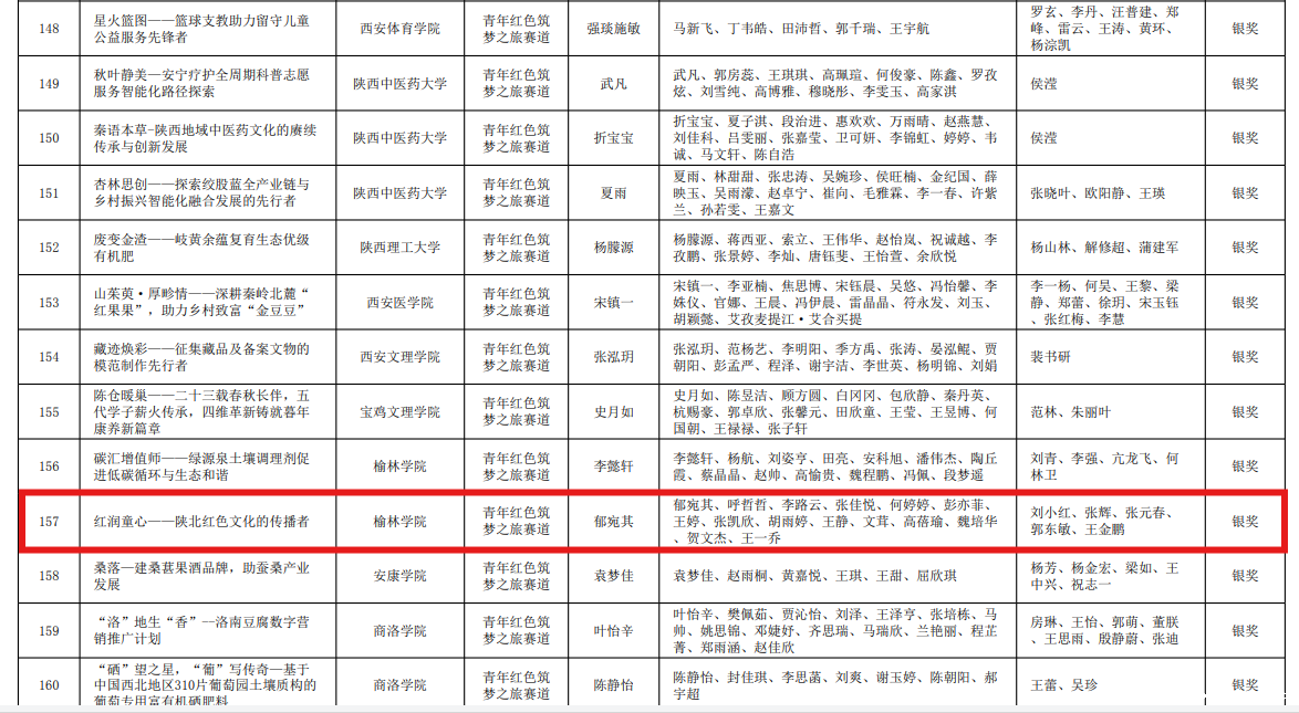 7月23日,陕西省教育厅发布了《关于中国国际大学生创新大赛(2025)陕西赛区省级复赛拟获奖项目名单的公示》,经过网络评审、现场路演答辩和会议评审等环节的激烈角逐,马克思主义学院由研究生和本科生共同组成的“红润童心——陕北红色文化的传播者”项目团队斩获了中国国际大学生创新大赛(2025)陕西赛区省级银奖。